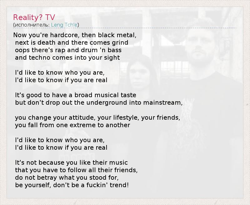 А как ты думаешь, о чем песня "Reality? TV" ?