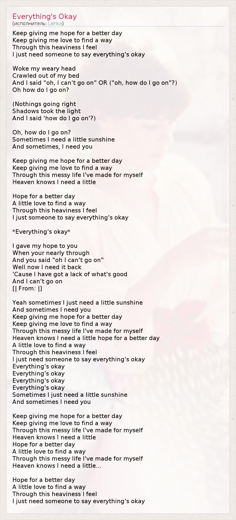 А как ты думаешь, о чем песня "Everything's Okay" ?