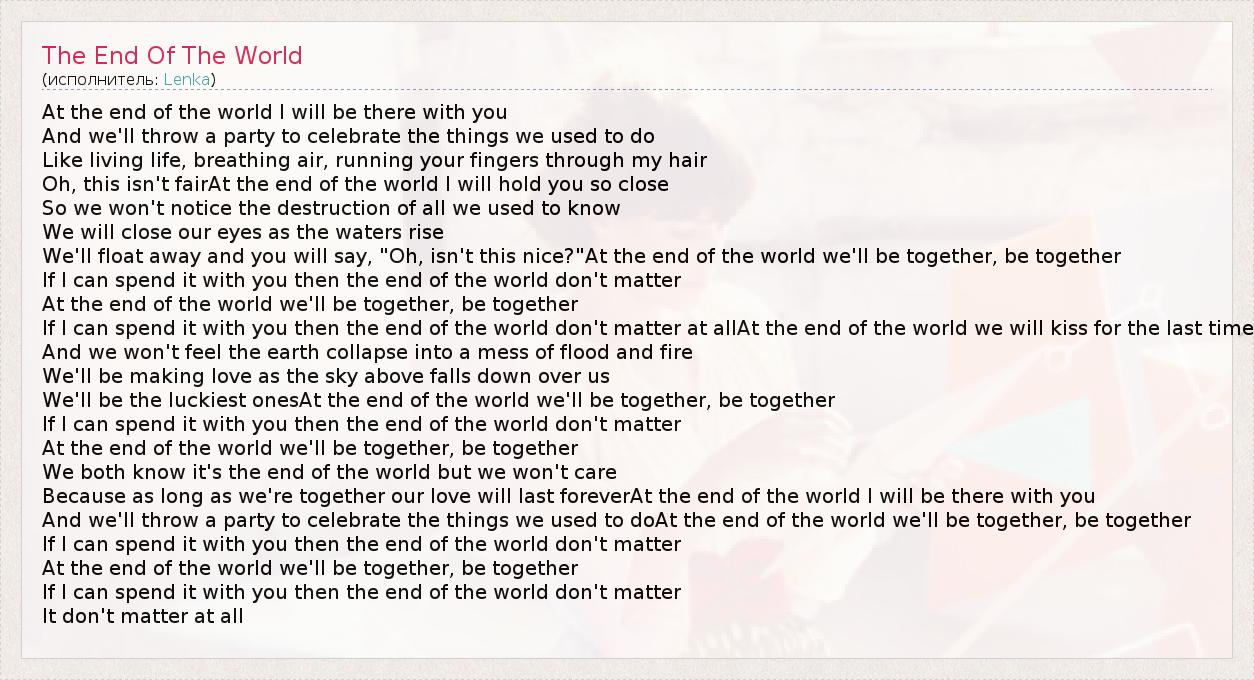 А как ты думаешь, о чем песня "The End Of The World" ?
