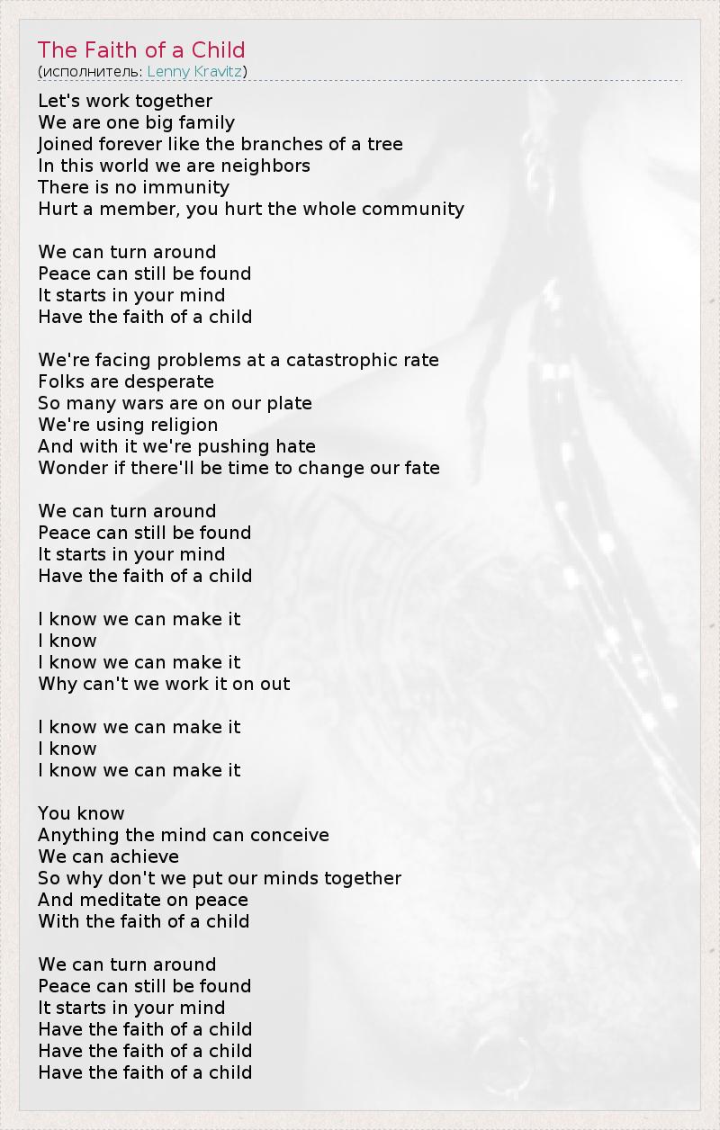 А как ты думаешь, о чем песня "The Faith of a Child" ?