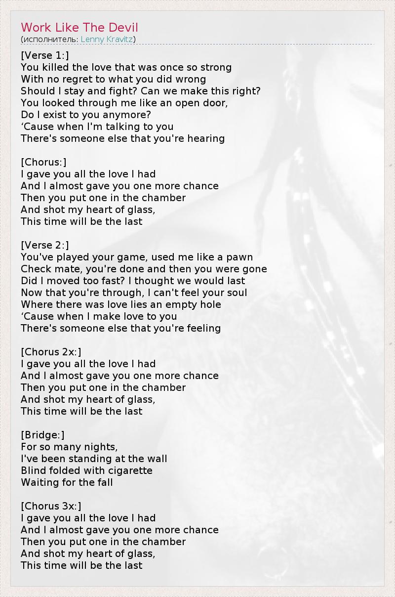 А как ты думаешь, о чем песня "Work Like The Devil" ?