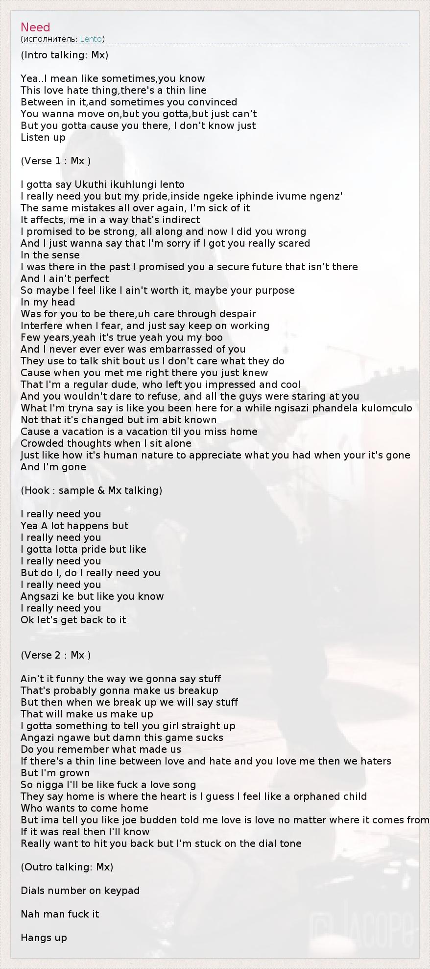 I really need you but my pride,inside ngeke iphinde ivume ngenz'