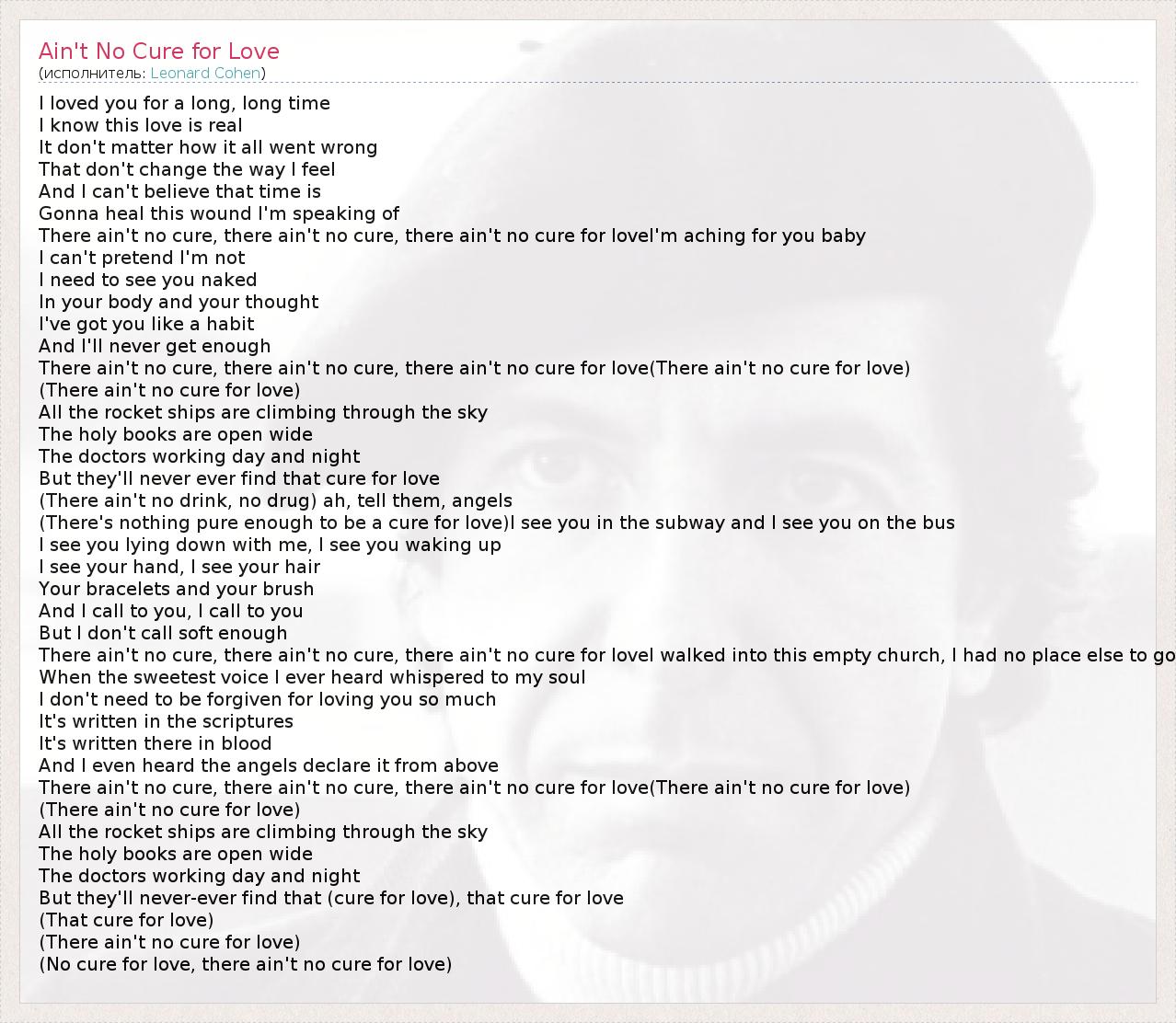 А как ты думаешь, о чем песня "Ain't No Cure for Love" ?