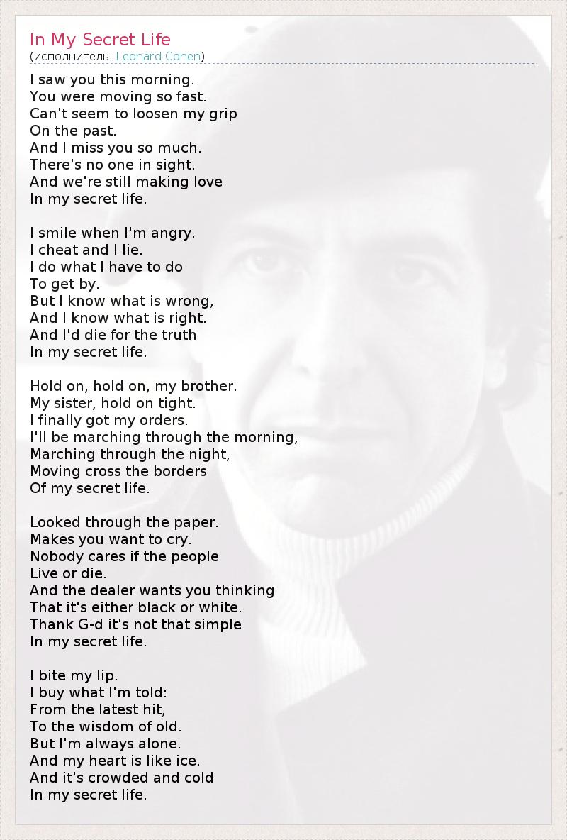А как ты думаешь, о чем песня "In My Secret Life" ?