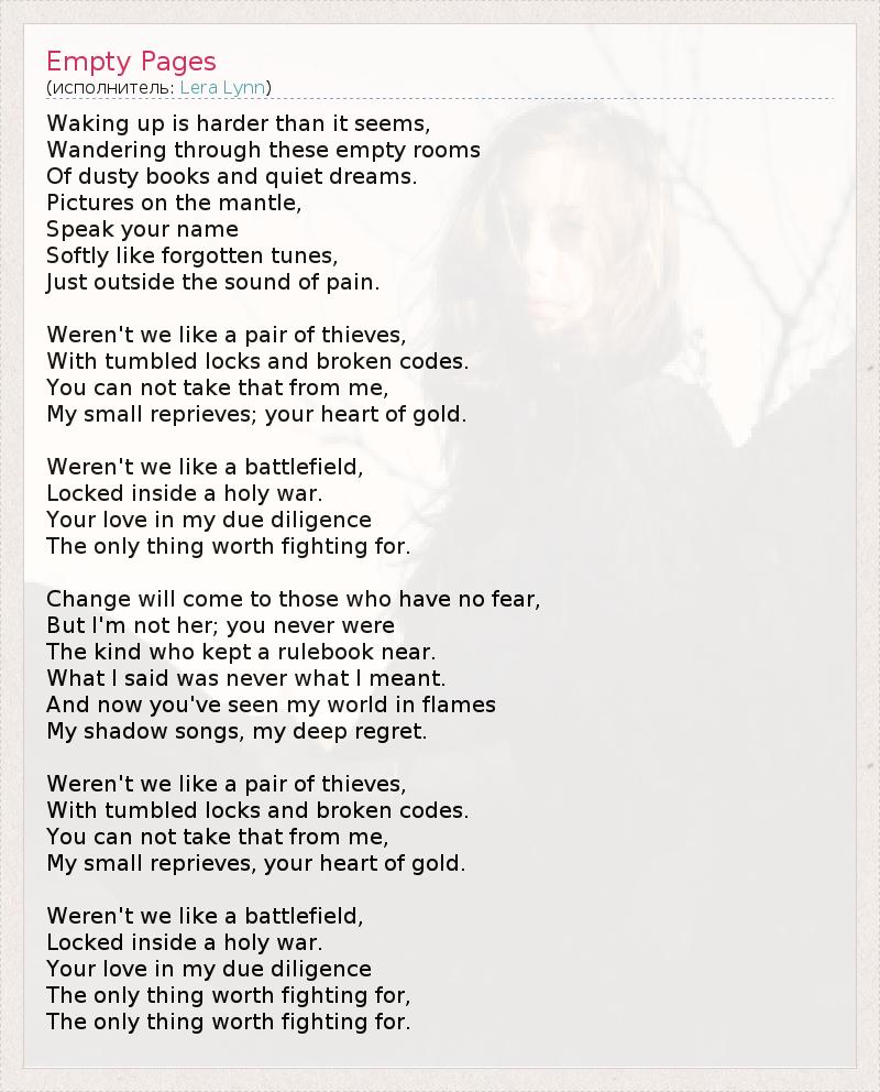 А как ты думаешь, о чем песня "Empty Pages" ?