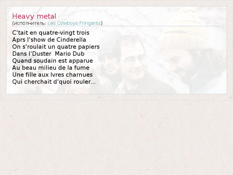 А как ты думаешь, о чем песня "Heavy metal" ?
