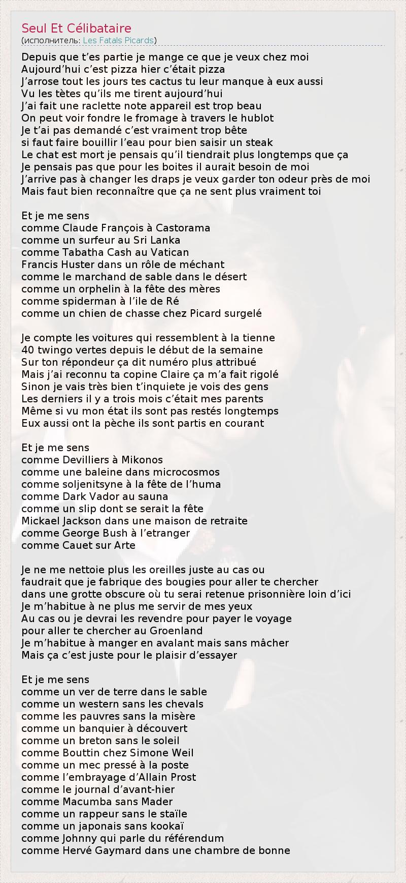 А как ты думаешь, о чем песня "Seul Et Célibataire" ?