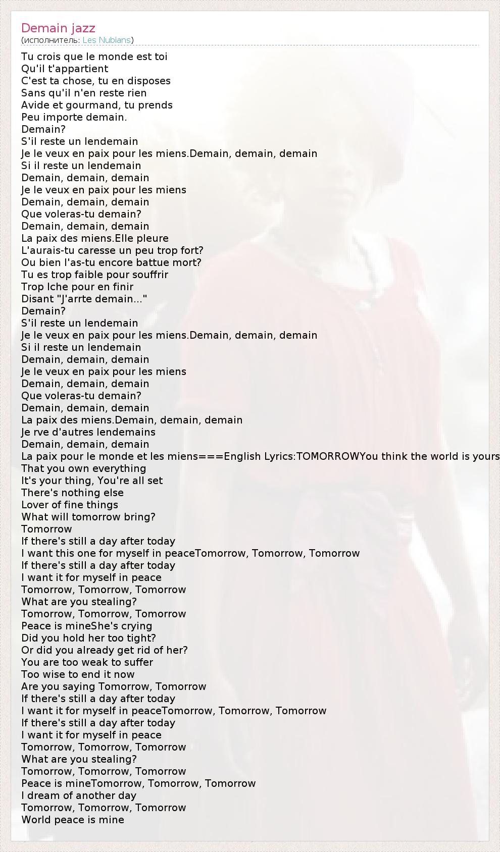 А как ты думаешь, о чем песня "Demain jazz" ?