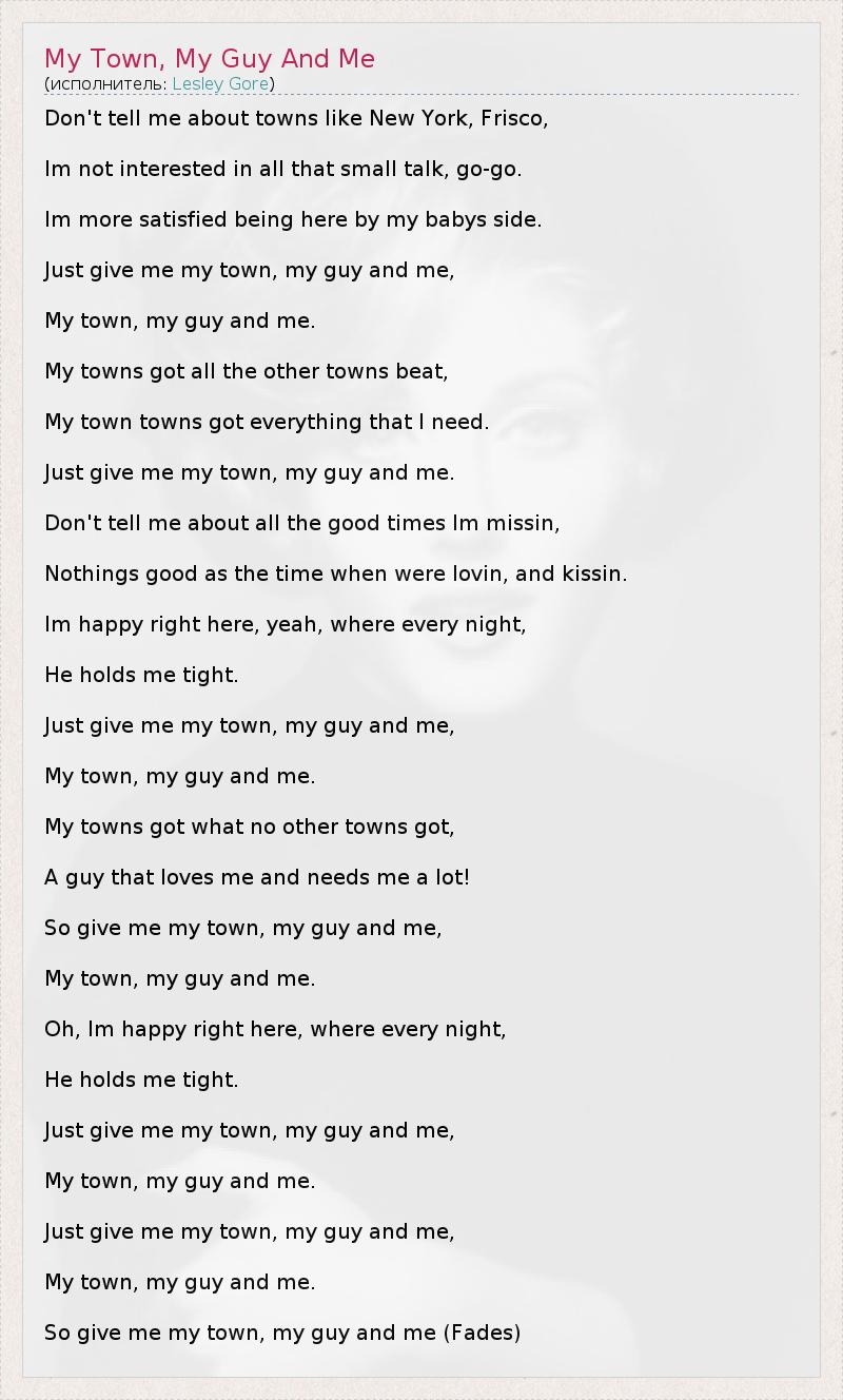 А как ты думаешь, о чем песня "My Town, My Guy And Me" ?