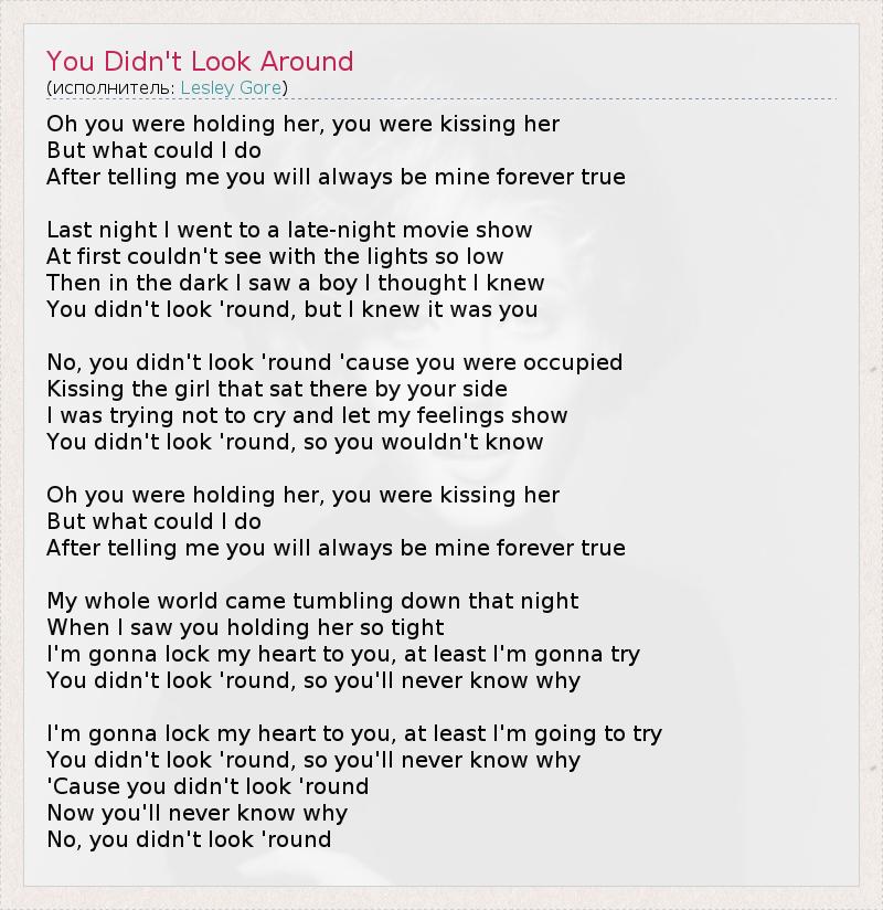 А как ты думаешь, о чем песня "You Didn't Look Around" ?