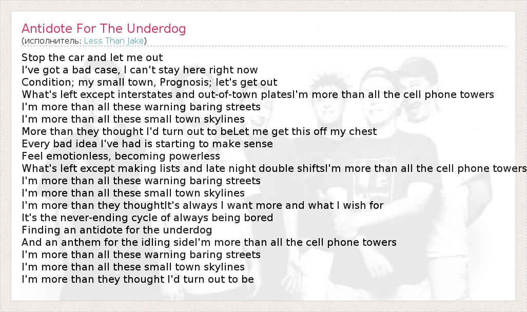А как ты думаешь, о чем песня "Antidote For The Underdog" ?