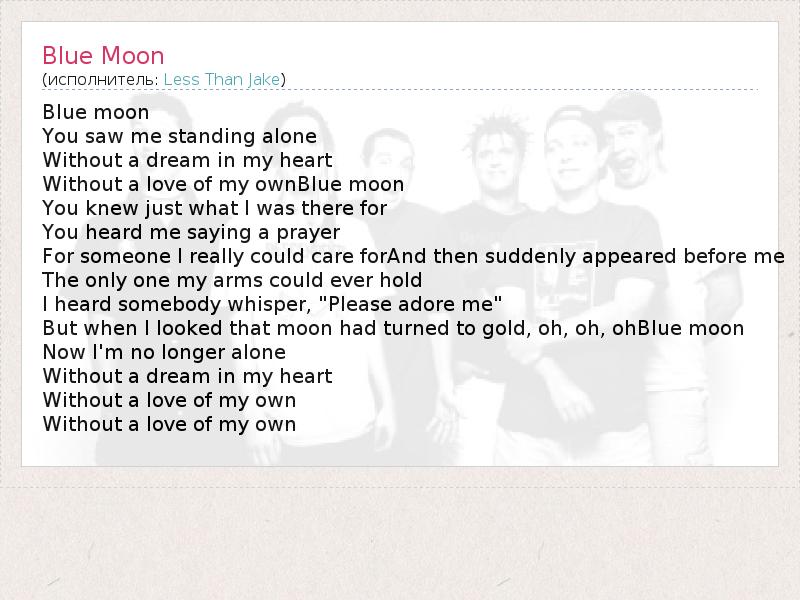 А как ты думаешь, о чем песня "Blue Moon" ?