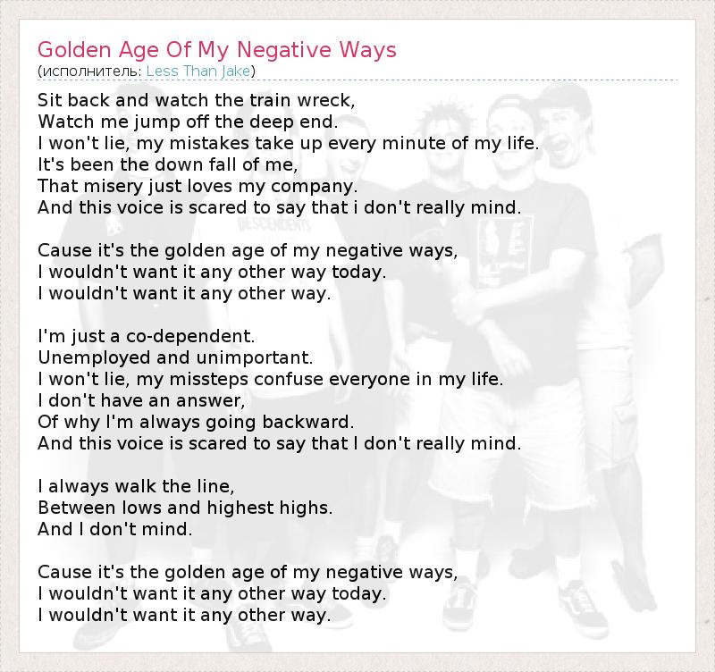 ГлавнаяИсполнителиLess Than JakeGolden Age Of My Negative Ways