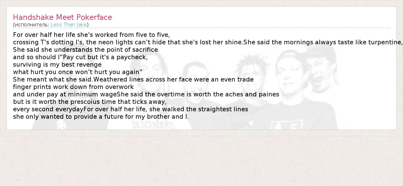 А как ты думаешь, о чем песня "Handshake Meet Pokerface" ?