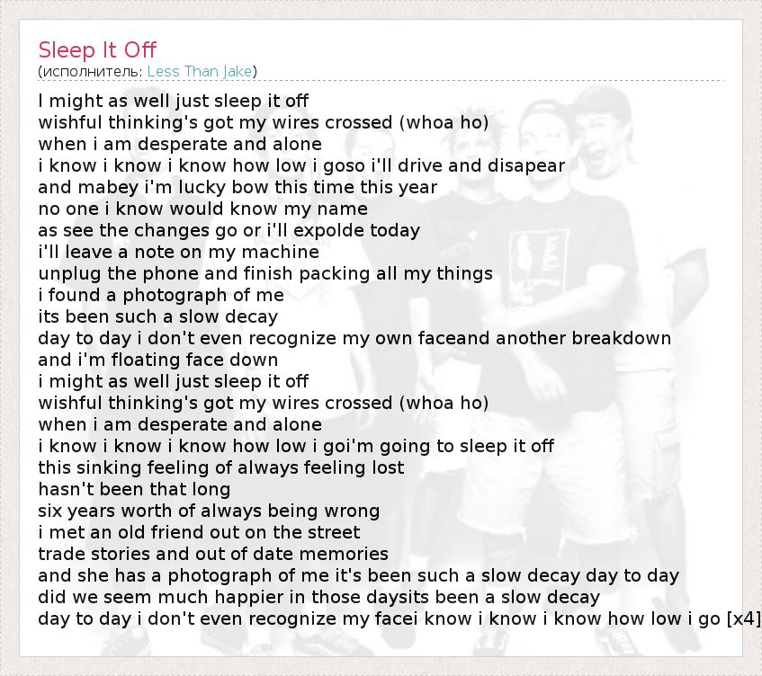 А как ты думаешь, о чем песня "Sleep It Off" ?
