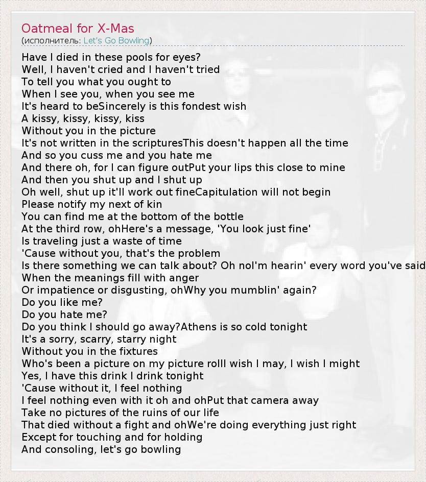 А как ты думаешь, о чем песня "Oatmeal for X-Mas" ?