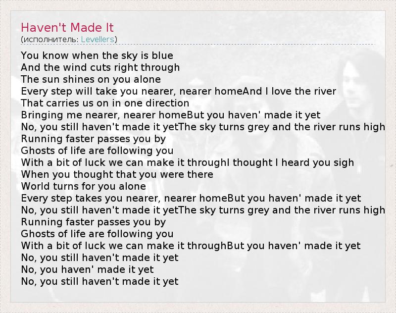 А как ты думаешь, о чем песня "Haven't Made It" ?