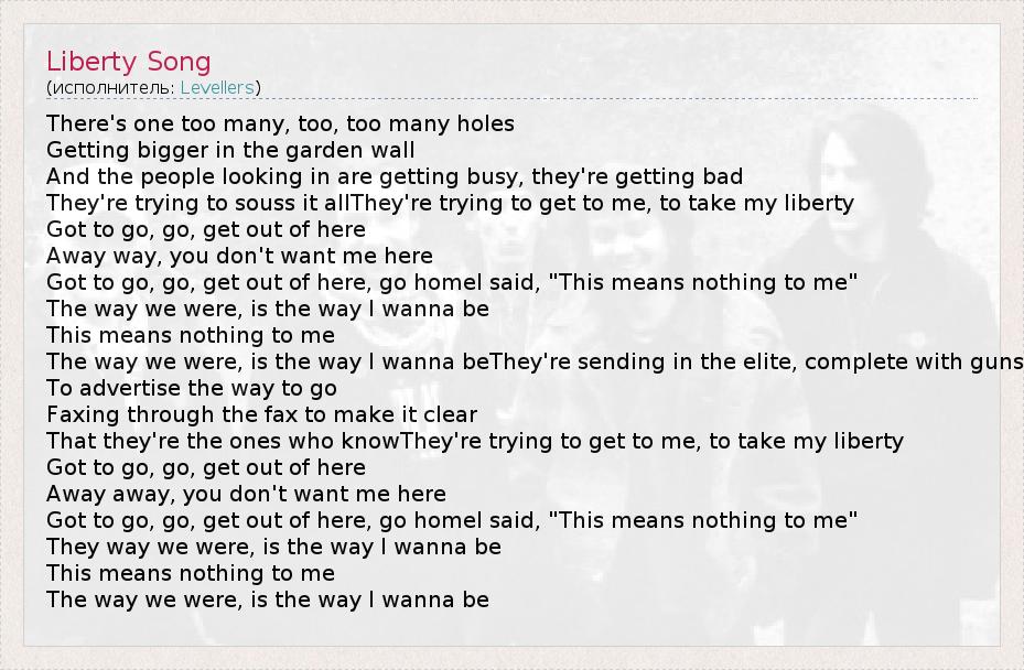 А как ты думаешь, о чем песня "Liberty Song" ?