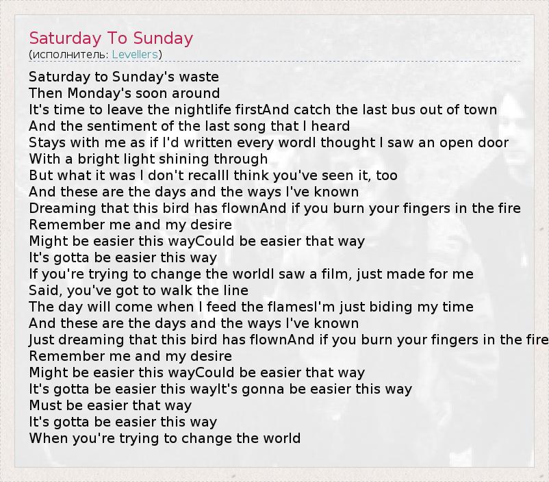 А как ты думаешь, о чем песня "Saturday To Sunday" ?