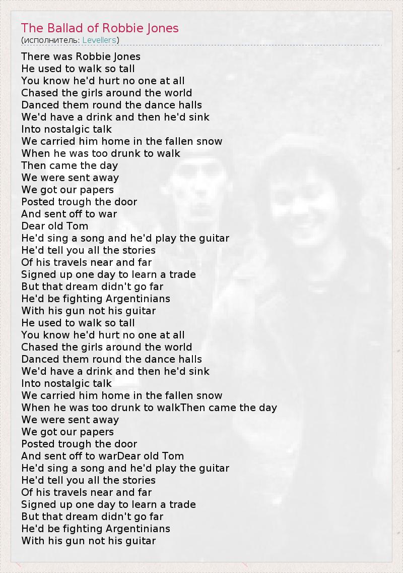 А как ты думаешь, о чем песня "The Ballad of Robbie Jones" ?