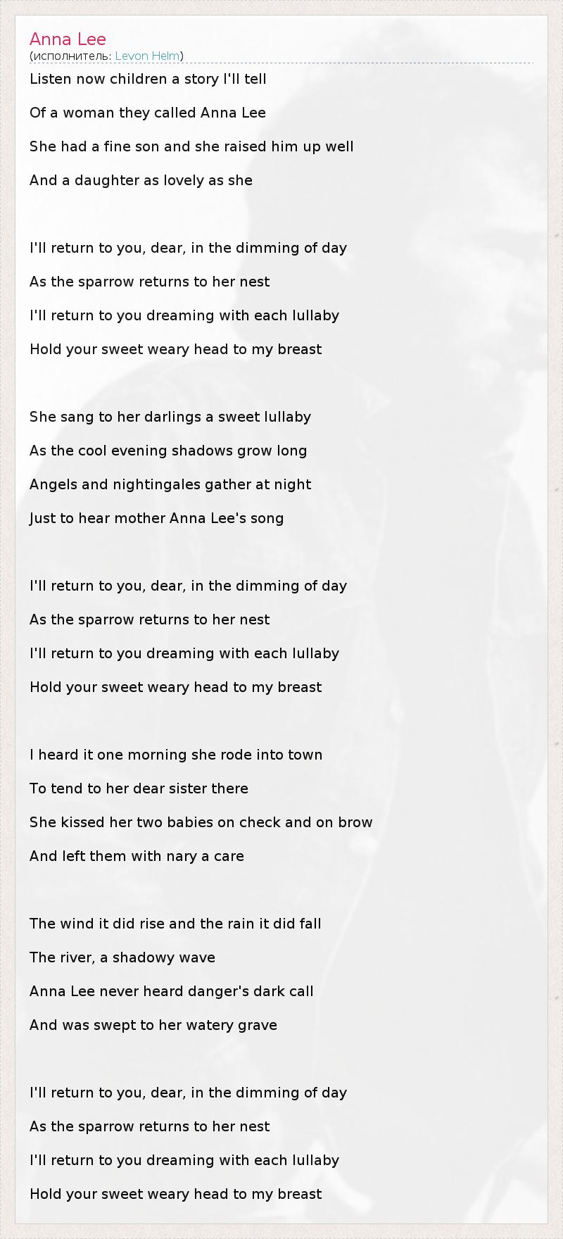 А как ты думаешь, о чем песня "Anna Lee" ?