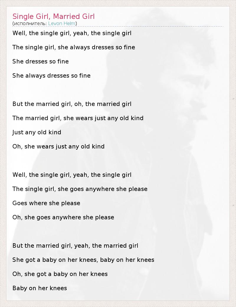 А как ты думаешь, о чем песня "Single Girl, Married Girl" ?