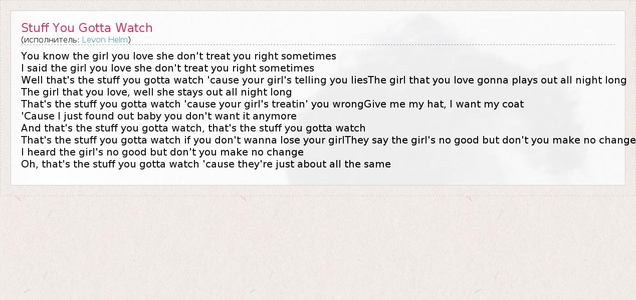 А как ты думаешь, о чем песня "Stuff You Gotta Watch" ?