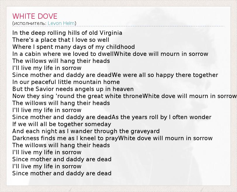 А как ты думаешь, о чем песня "WHITE DOVE" ?