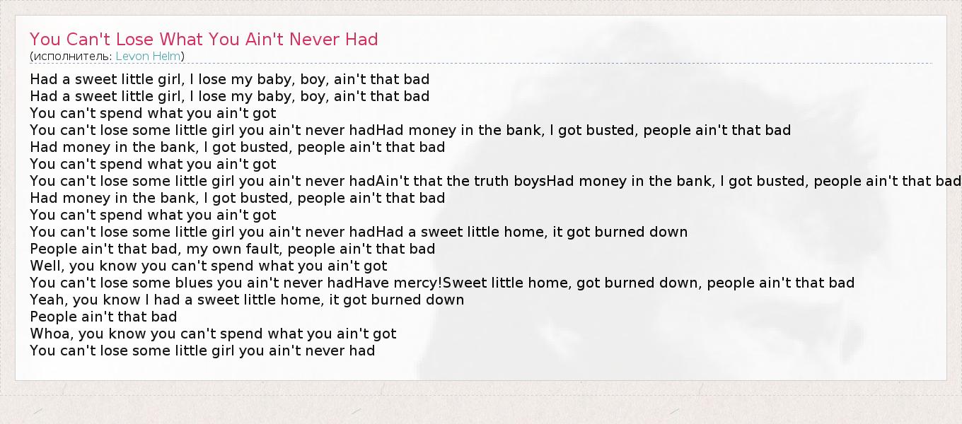 А как ты думаешь, о чем песня "You Can't Lose What You Ain't Never Had" ?