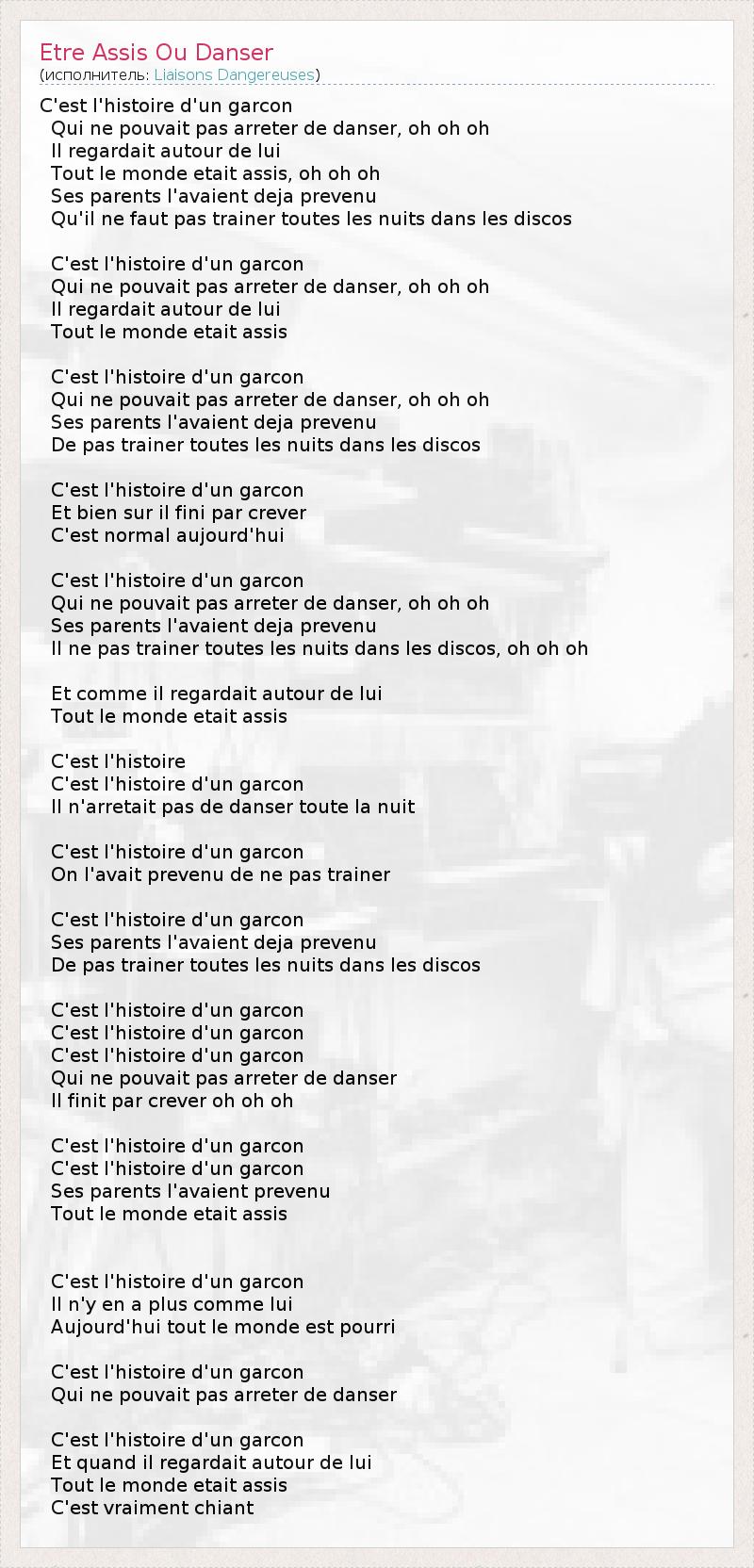 А как ты думаешь, о чем песня "Etre Assis Ou Danser" ?
