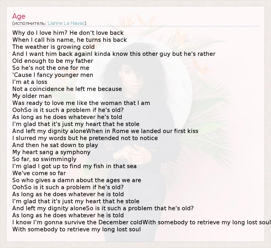 А как ты думаешь, о чем песня "Age" ?