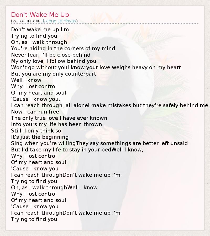 А как ты думаешь, о чем песня "Don't Wake Me Up" ?