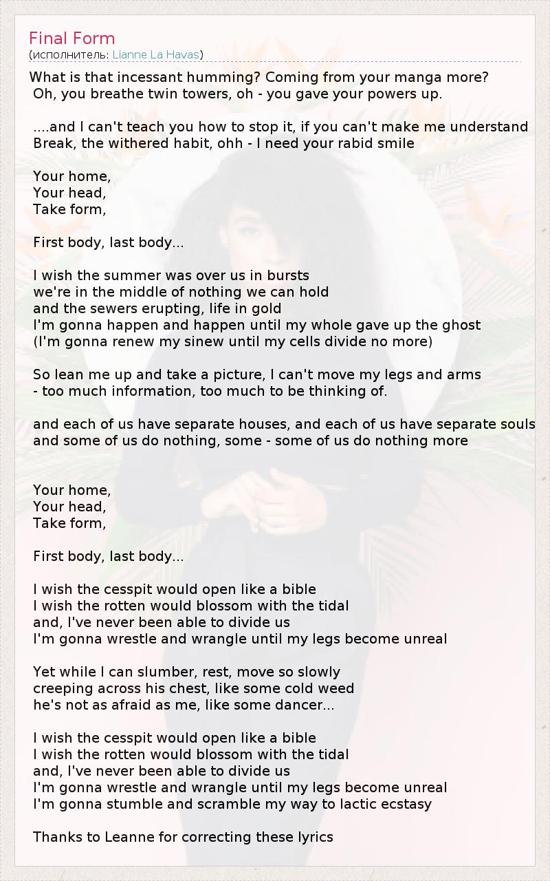 Это интересно:Лиэн появилась на свет в семье грека и уроженки Ямайки 23 августа 1989 года в Лондоне. С самого детства Ла Хавас была окружена музыкой. Отец девочки частенько играл на гитаре и пианино, в то время как мать прививала дочке хороший музыкальный вкус с помощью пластинок Джил Скотт и Мэри Джей Блайдж. Свою первую песню Лиэн написала в возрасте 11 лет, овладела гитарой еще до совершеннолетия, и как... продолжение