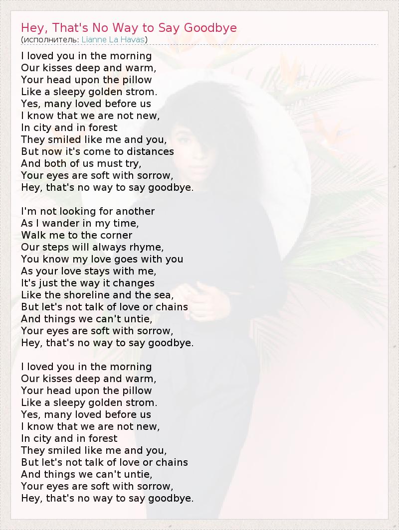 А как ты думаешь, о чем песня "Hey, That's No Way to Say Goodbye" ?