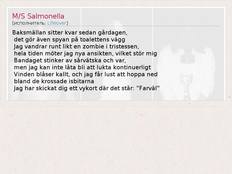 А как ты думаешь, о чем песня "M/S Salmonella" ?