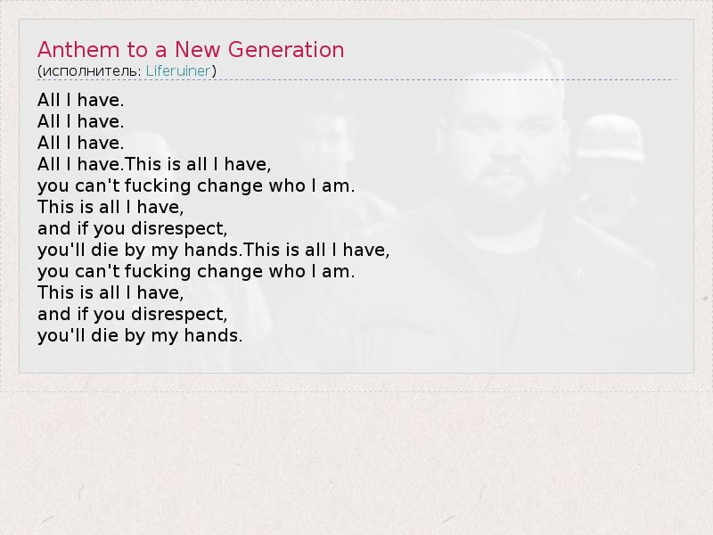 А как ты думаешь, о чем песня "Anthem to a New Generation" ?
