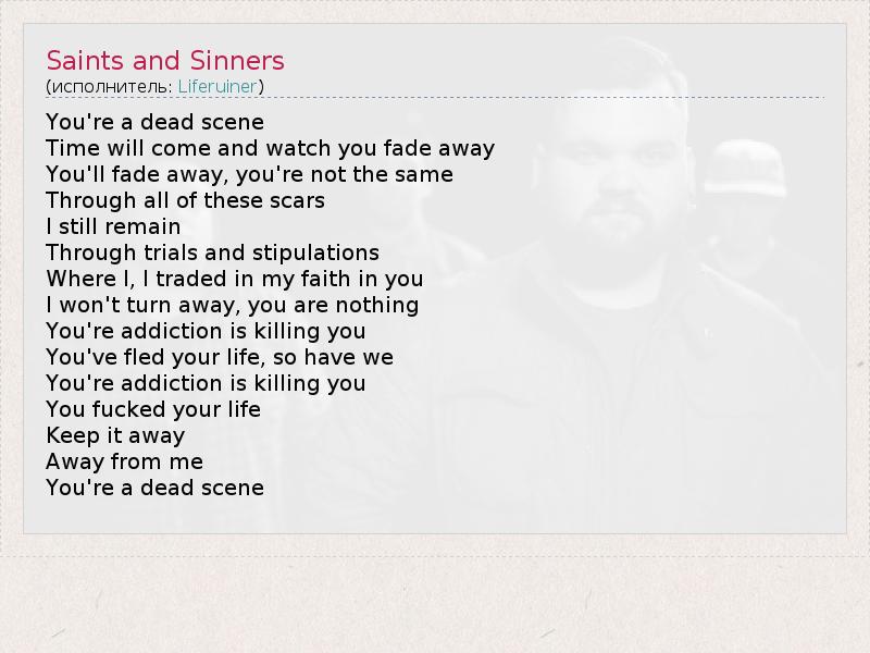А как ты думаешь, о чем песня "Saints and Sinners" ?