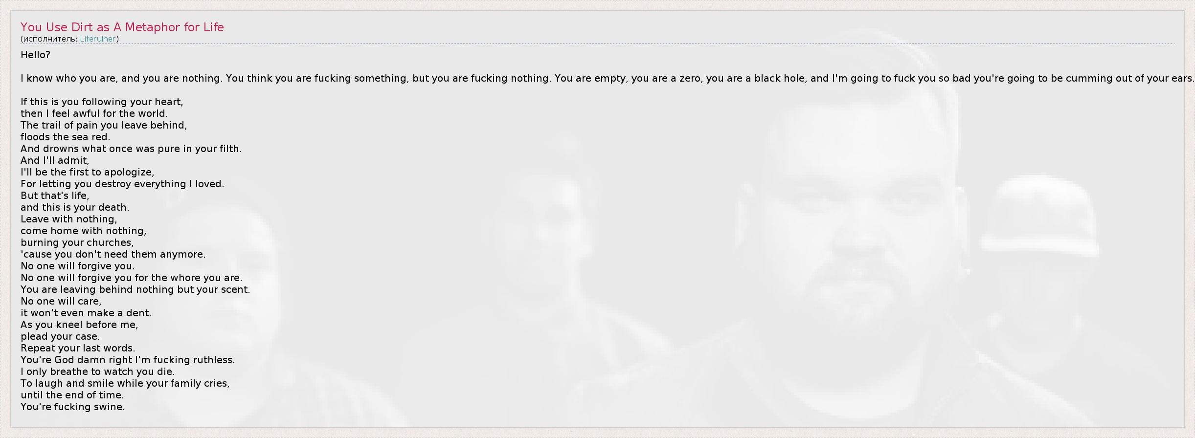 ГлавнаяИсполнителиLiferuinerYou Use Dirt as A Metaphor for Life