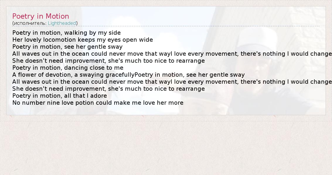 А как ты думаешь, о чем песня "Poetry in Motion" ?