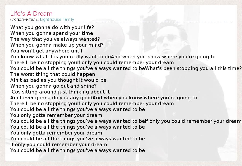 А как ты думаешь, о чем песня "Life's A Dream" ?
