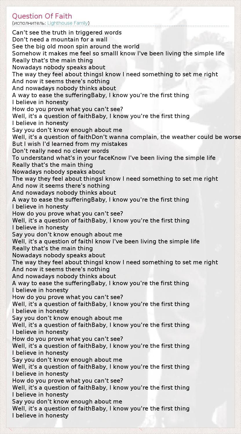 А как ты думаешь, о чем песня "Question Of Faith" ?