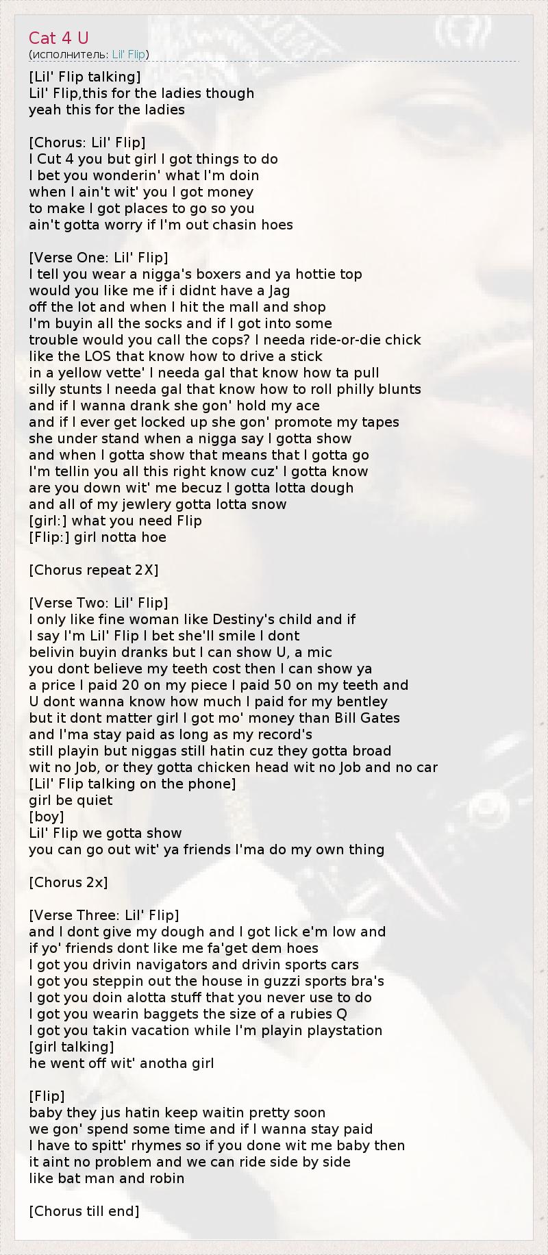 А как ты думаешь, о чем песня "Cat 4 U" ?