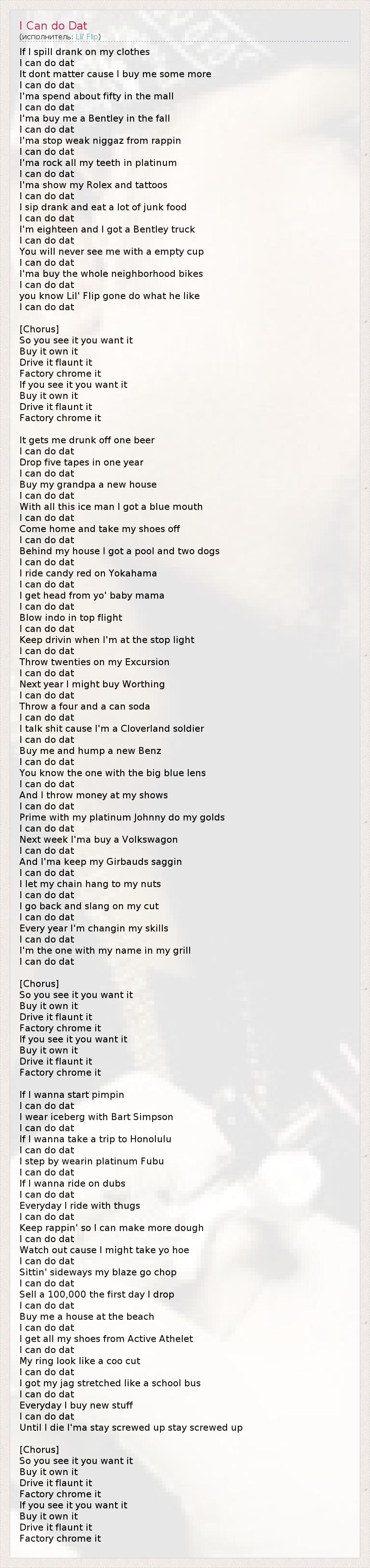 А как ты думаешь, о чем песня "I Can do Dat" ?