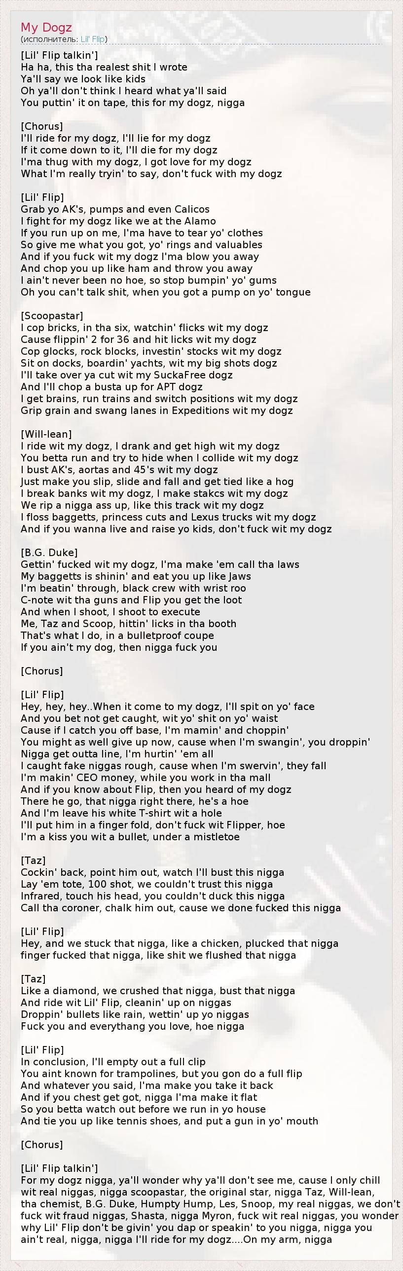 And if you wanna live and raise yo kids, don't fuck wit my dogz
