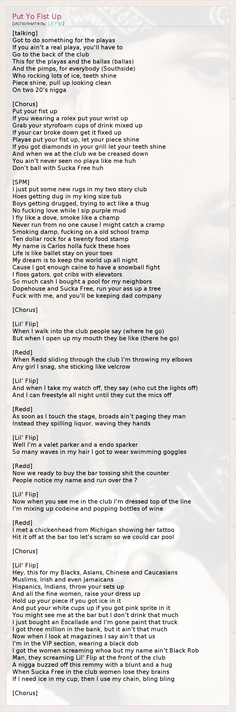 А как ты думаешь, о чем песня "Put Yo Fist Up" ?