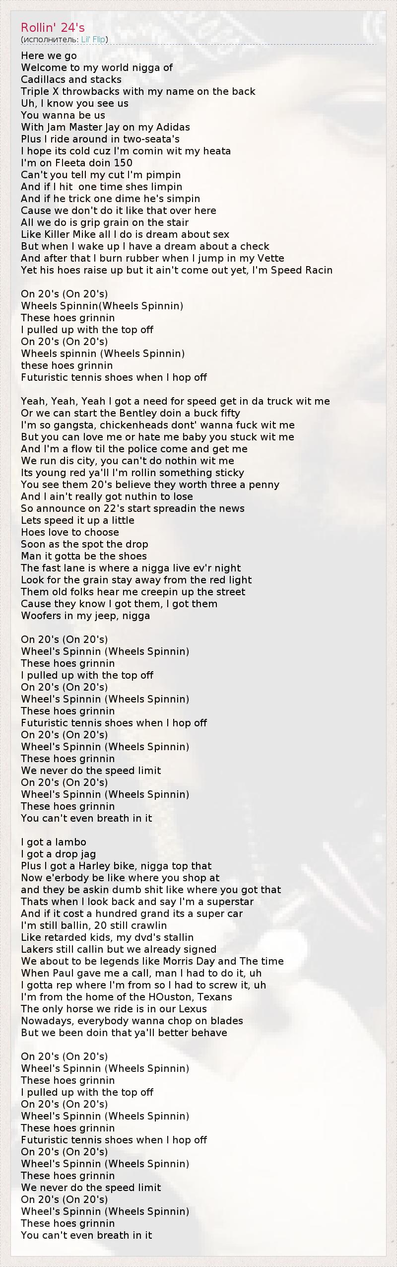 А как ты думаешь, о чем песня "Rollin' 24's" ?