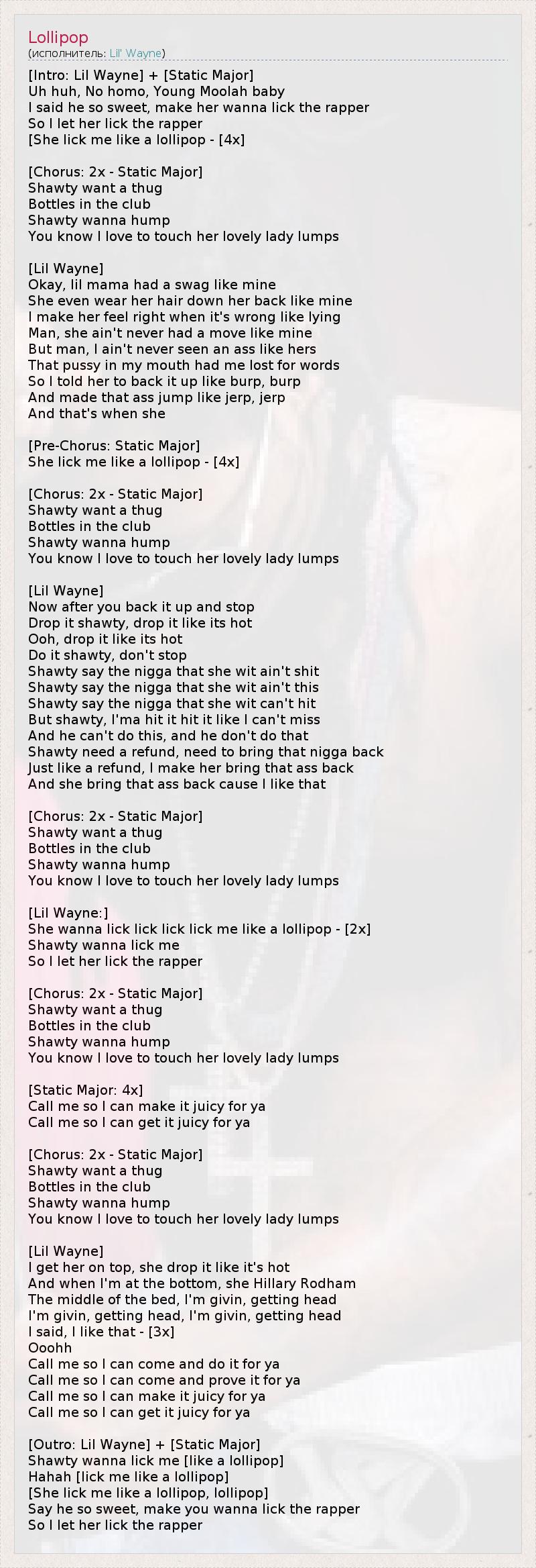 She wanna lick lick lick lick me like a lollipop - [2x]