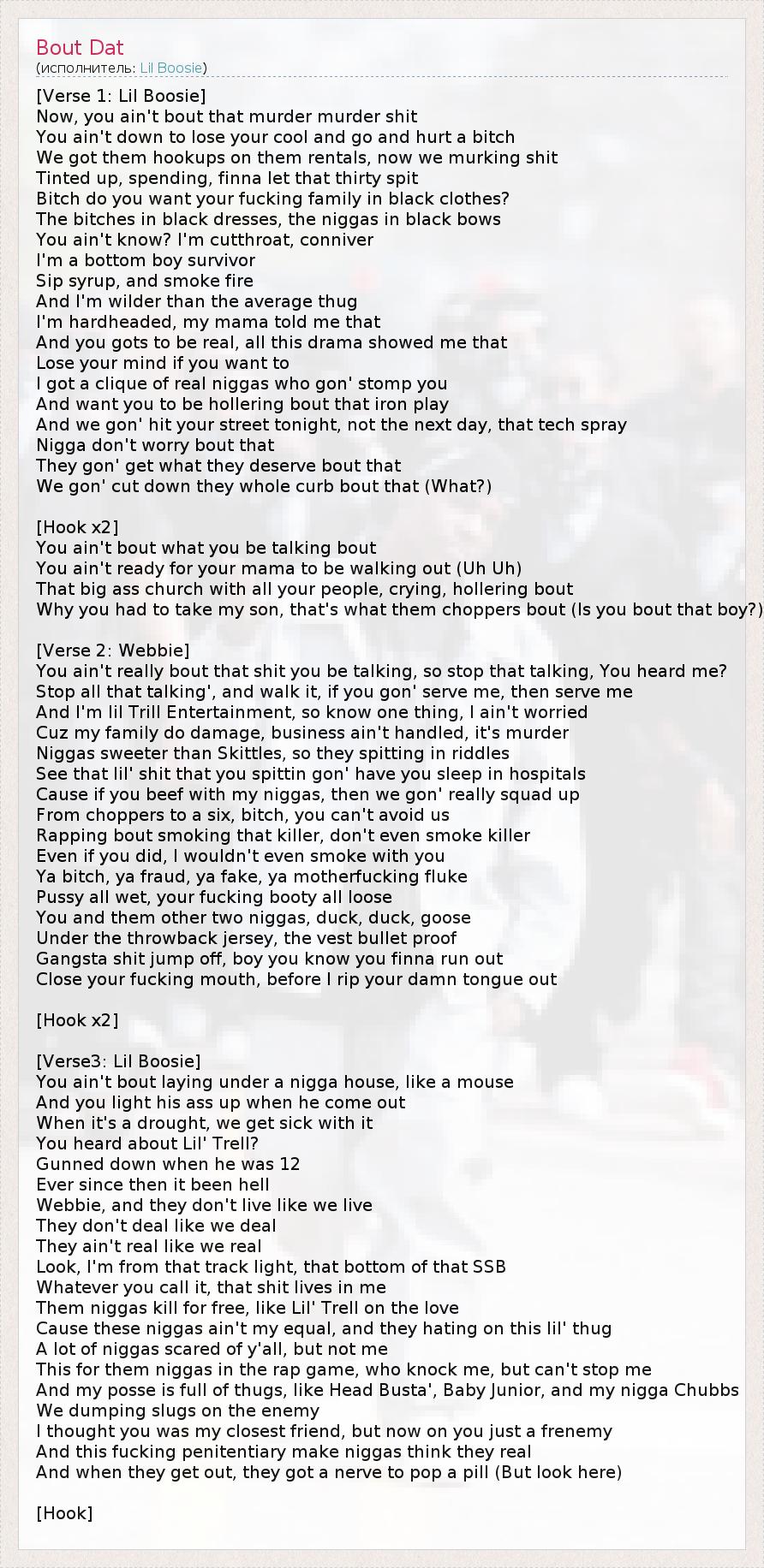 А как ты думаешь, о чем песня "Bout Dat" ?