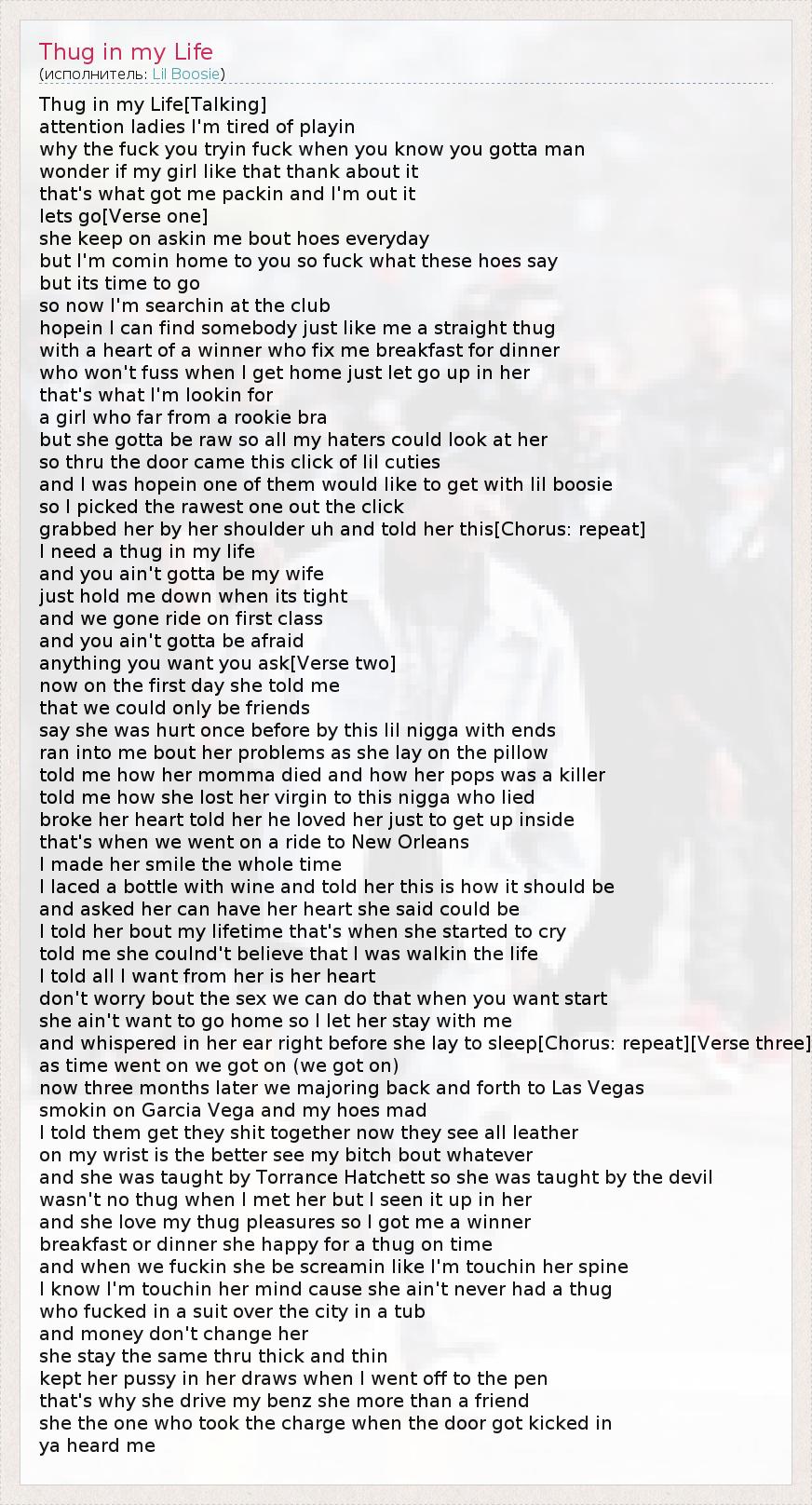 А как ты думаешь, о чем песня "Thug in my Life" ?