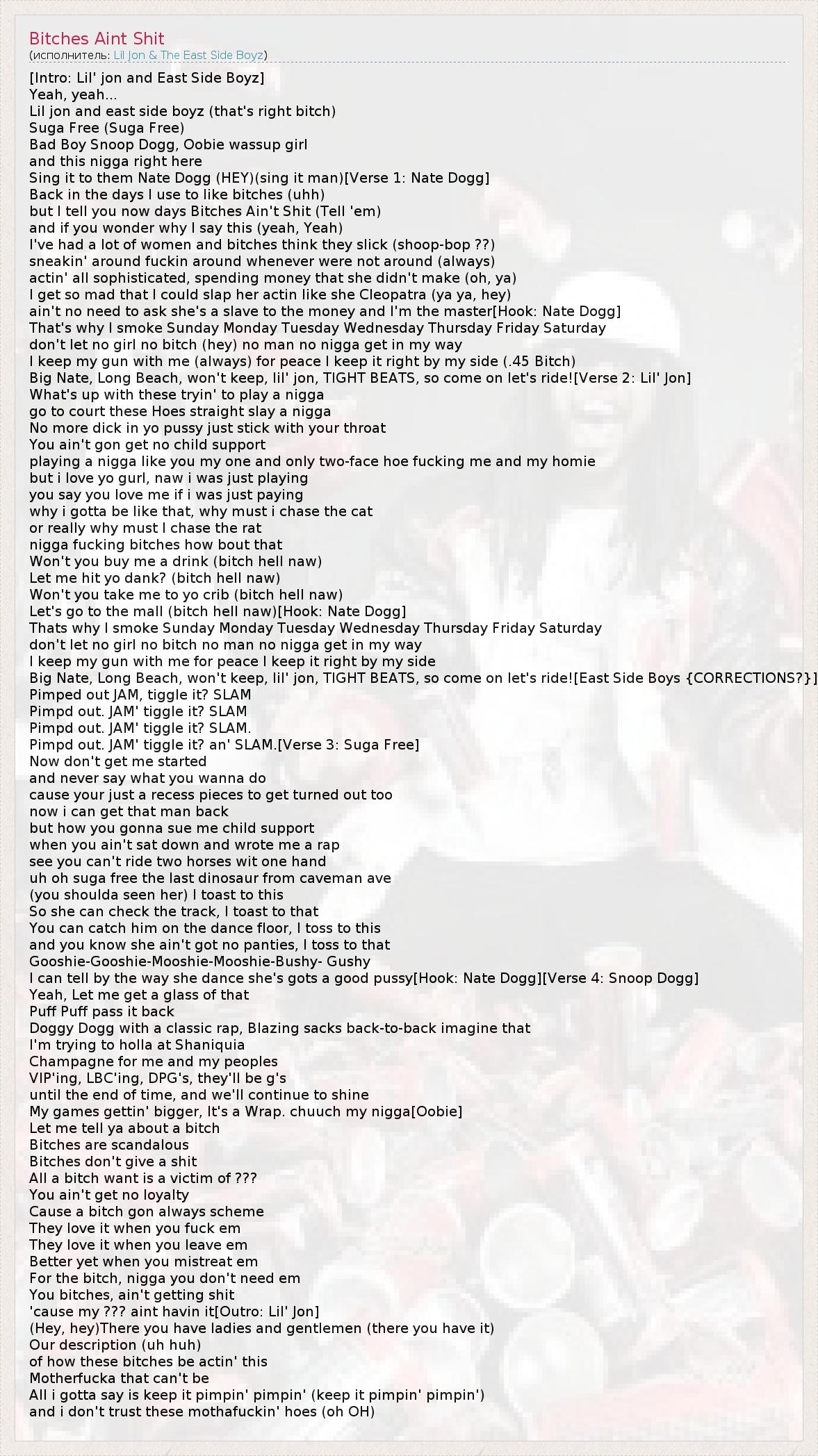 А как ты думаешь, о чем песня "Bitches Aint Shit" ?